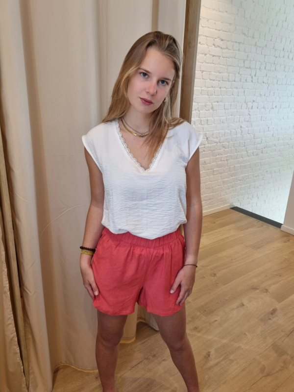 JDYTRAIN S/L LACE V-NECK TOP WVN DIA wit