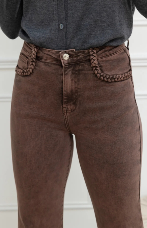 Sister wide jeans met hoge taille chocolat ST 6039lichtjes wijde denim van Sister in een tijdloze look, valt mooi door naar beneden, lengte 32