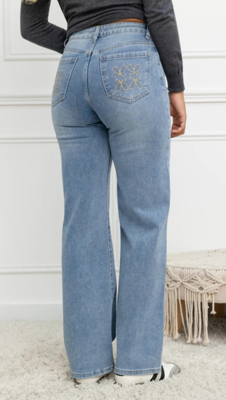 FR hoge taille wide fit met broderiedetail jeansblauw