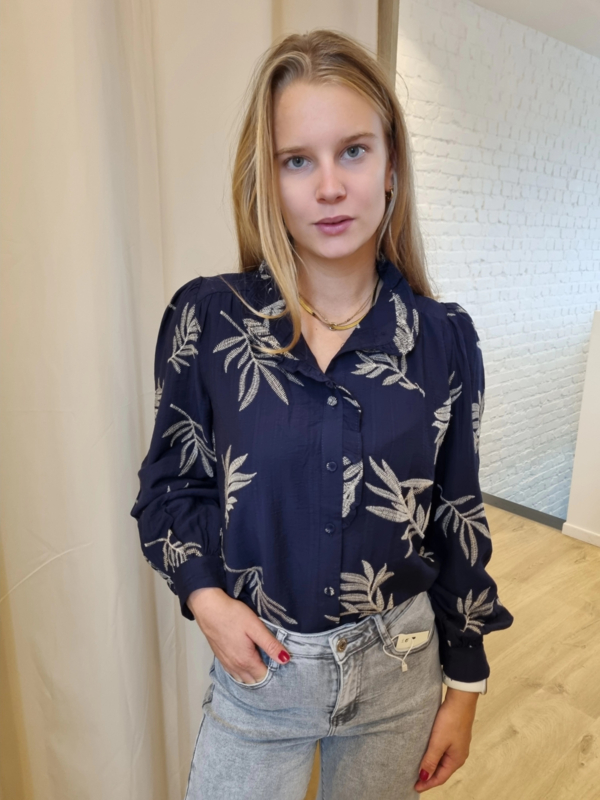 marineblauwe blouse met broderie