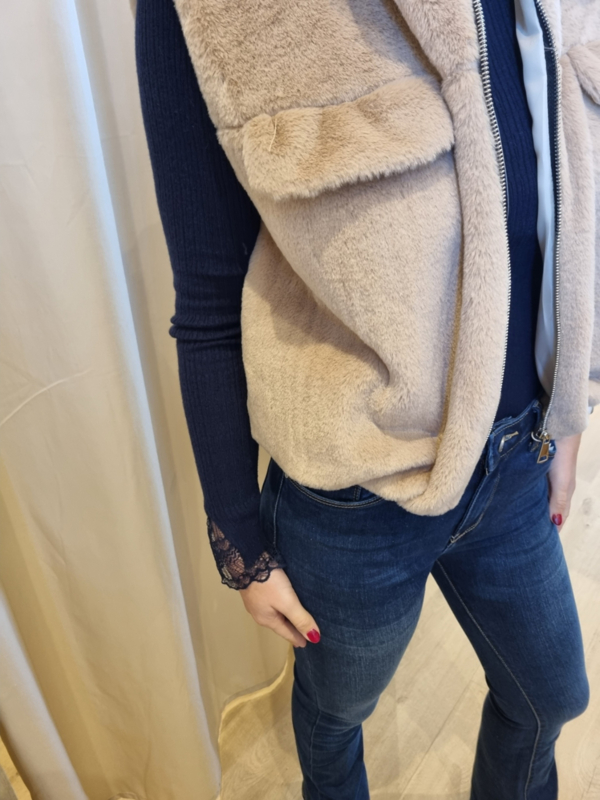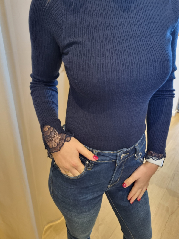 truitje met kanten stukje aan de mouwen marineblauw