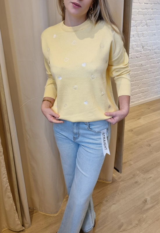 trui met hartjes lichtgeel