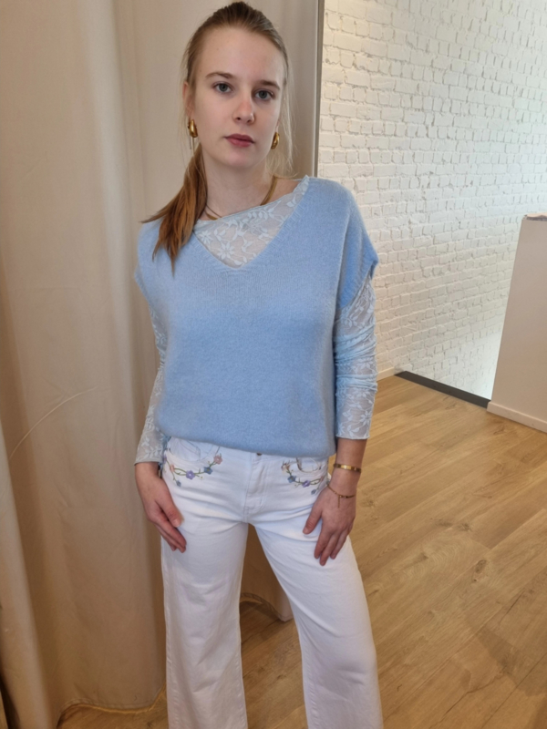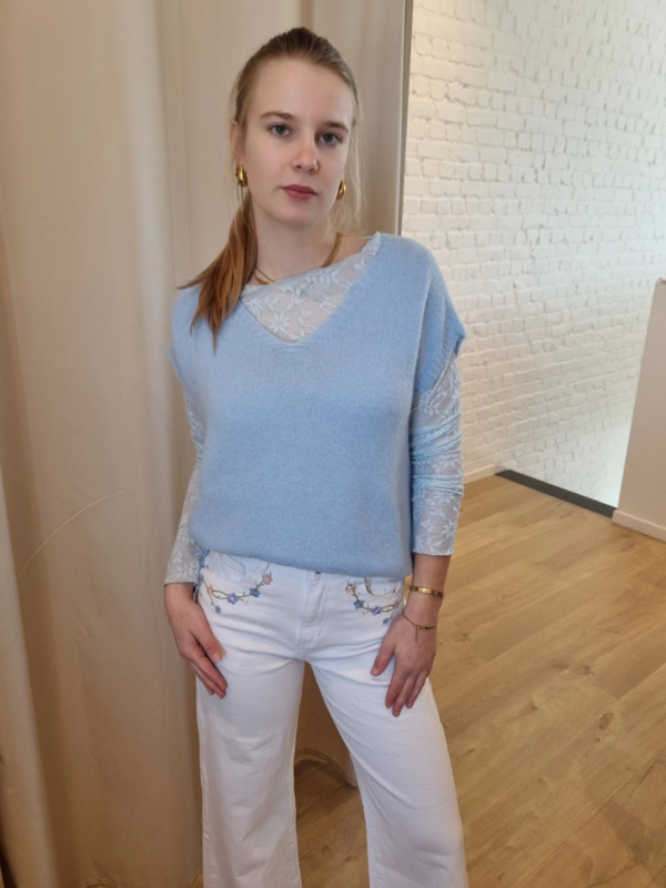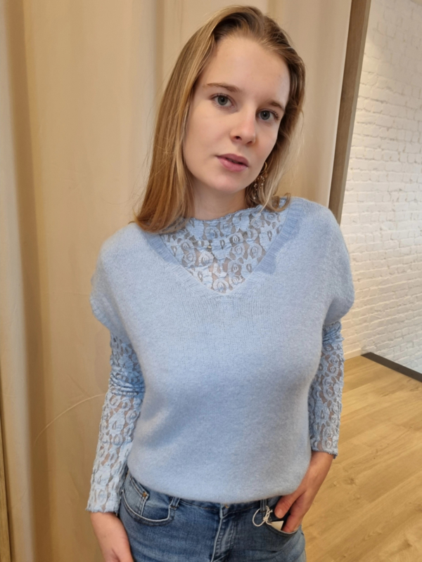 ruimer truitje zonder mouwen lichtblauw