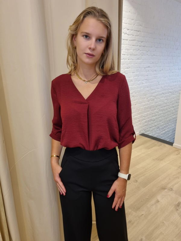 blouse met V-hals en 3/4 mouw JDY bordeaux