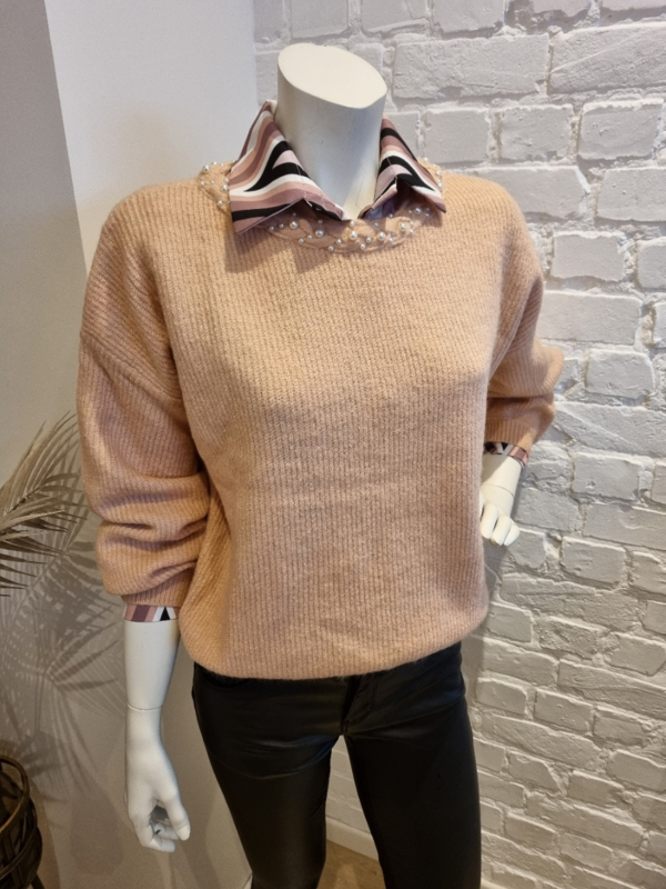 hemd roze en ecru print