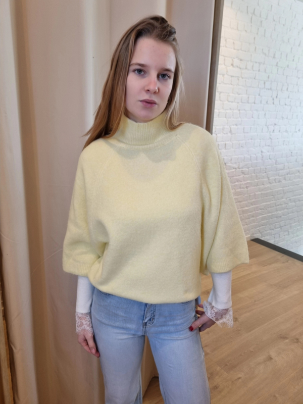 Combineer deze trui met een licht truitje met detail onder en je hebt een leuke casual look