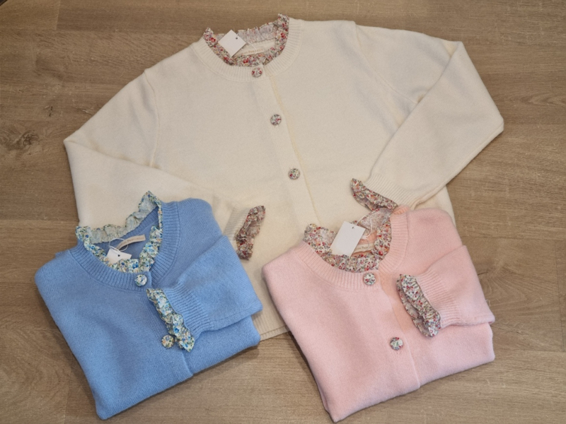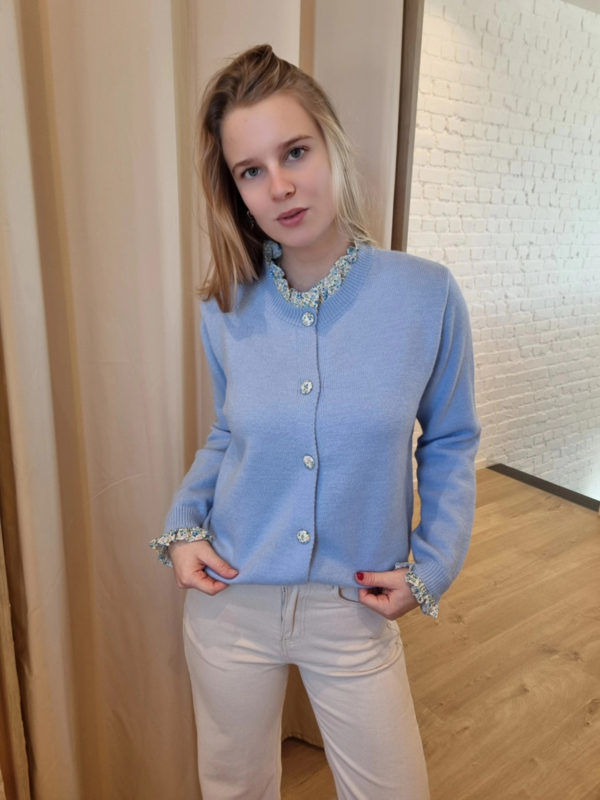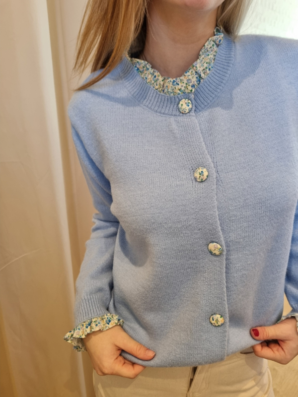 trui in effen stof met klein wit detail aan de hals en mouwen