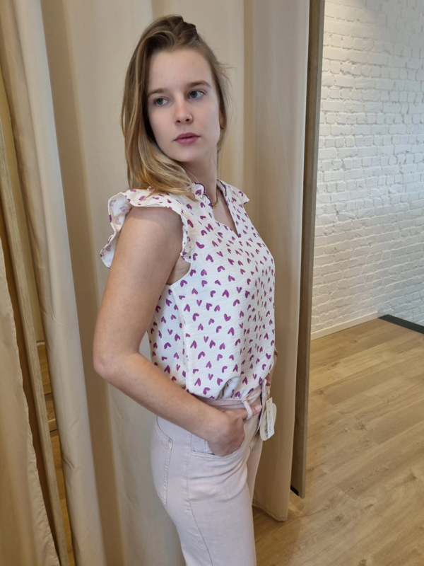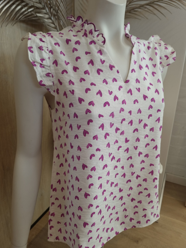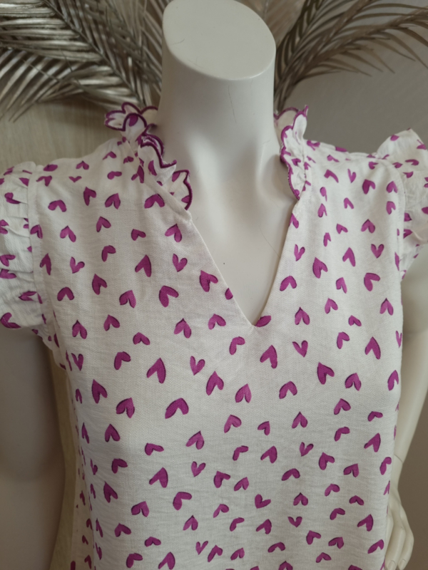 bloesje met volantmouwtjes en frulletjes met hartjesmotief