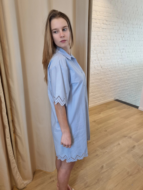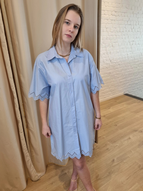 luchtige katoenen jurk met geperforeerd motief lichtblauw