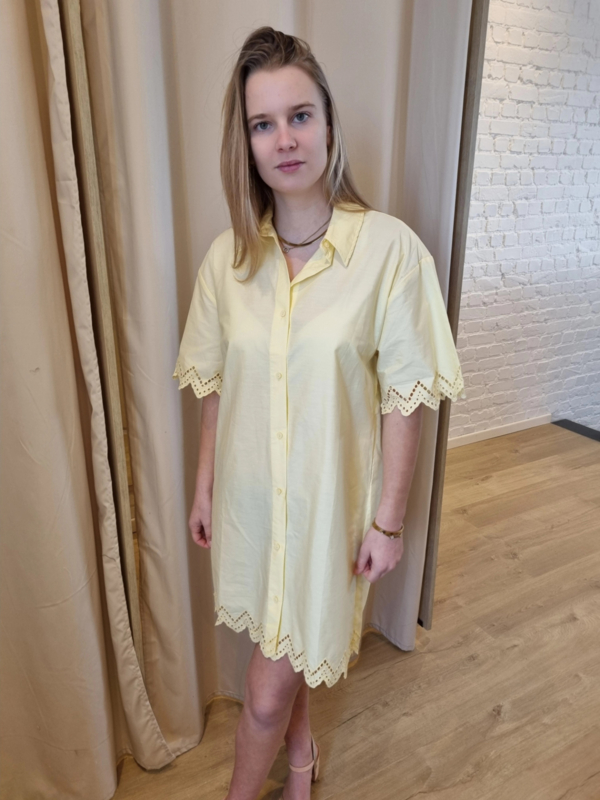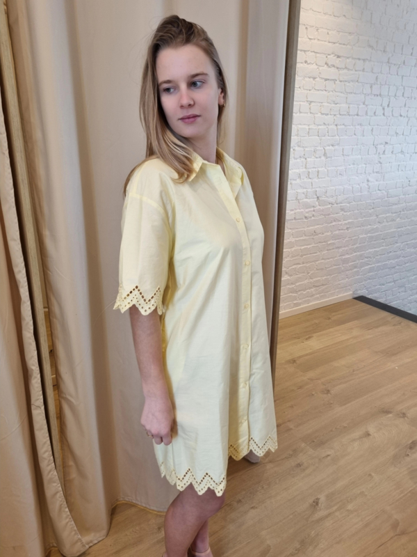 luchtige katoenen jurk met geperforeerd motief lichtgeel