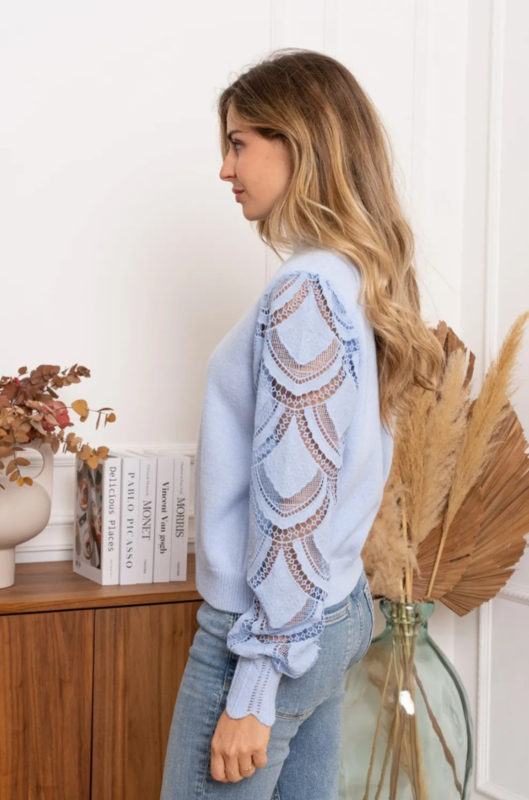 trui met kanten mouwen hemelsblauw