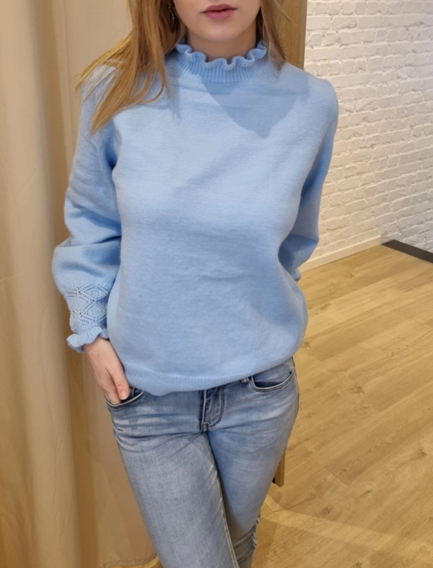trui met frulletjes aan de pols en hals hemelsblauw