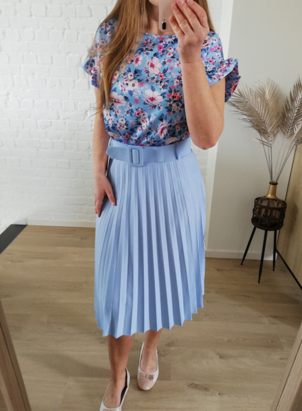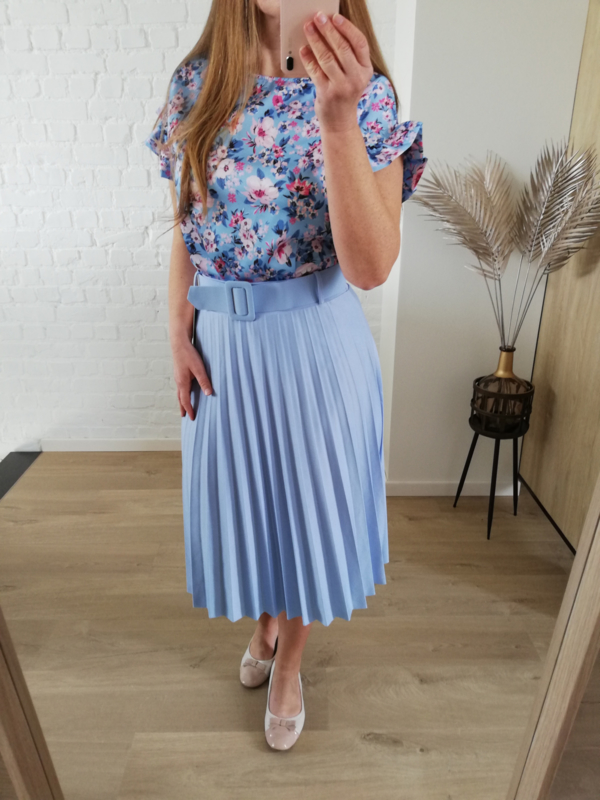 plissé rok lichtblauw met riem
