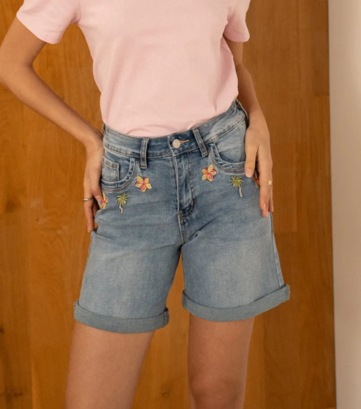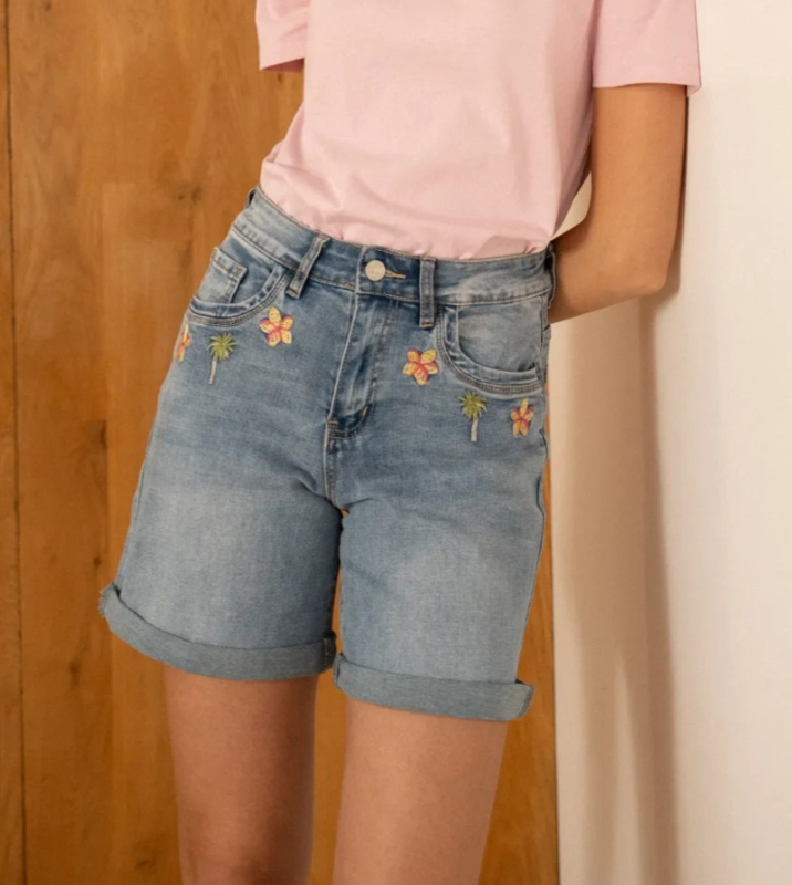 shortje met broderie bloem en palm Onado