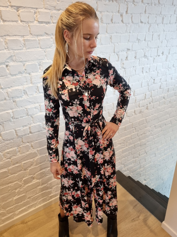 elastische jurk met bloemenprint zwart