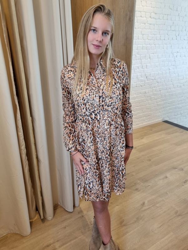 jurk met fijne lurex en beige luipaardprint