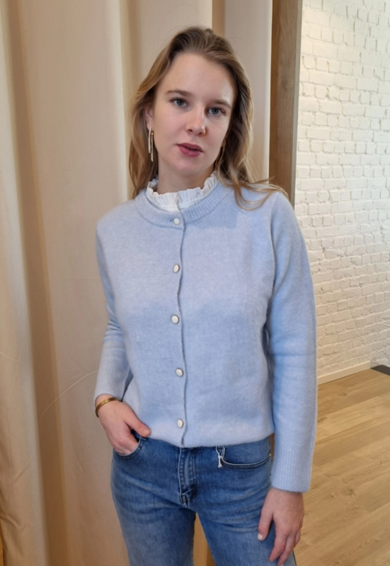 trui met zilveren knoopjes lichtblauwlichtere trui met mooie knoopjes, deze lentevariant is een echte musthave