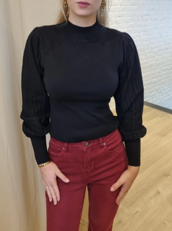 aansluitend truitje met licht glanseffect in de mouwen zwartzacht truitje met lichtjes oversized mouwen en subtiel glanseffect in de mouwen