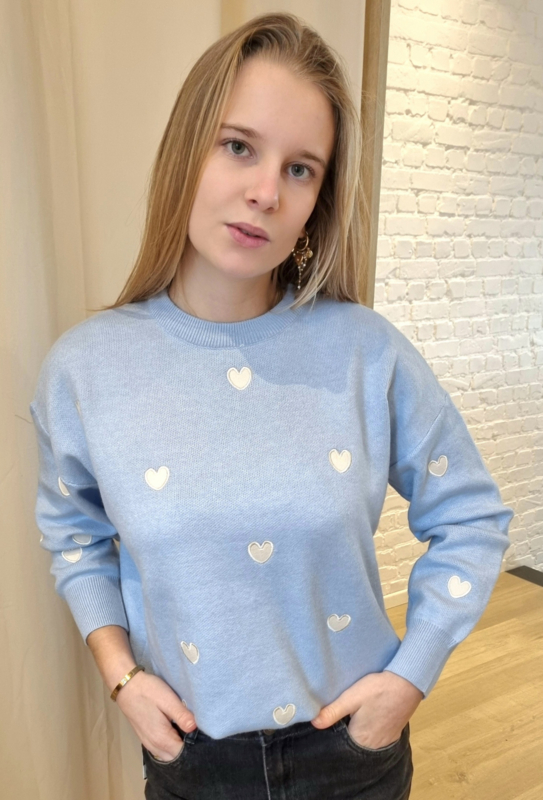 trui met hartjes lichtblauwmooie zachte trui met hartjesbroderie
