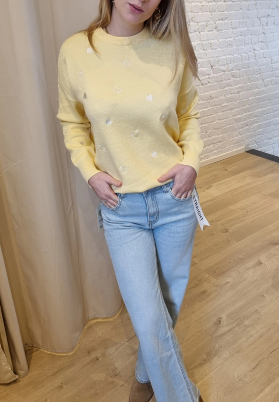 trui met hartjes lichtgeelmooie zachte trui met hartjesbroderie