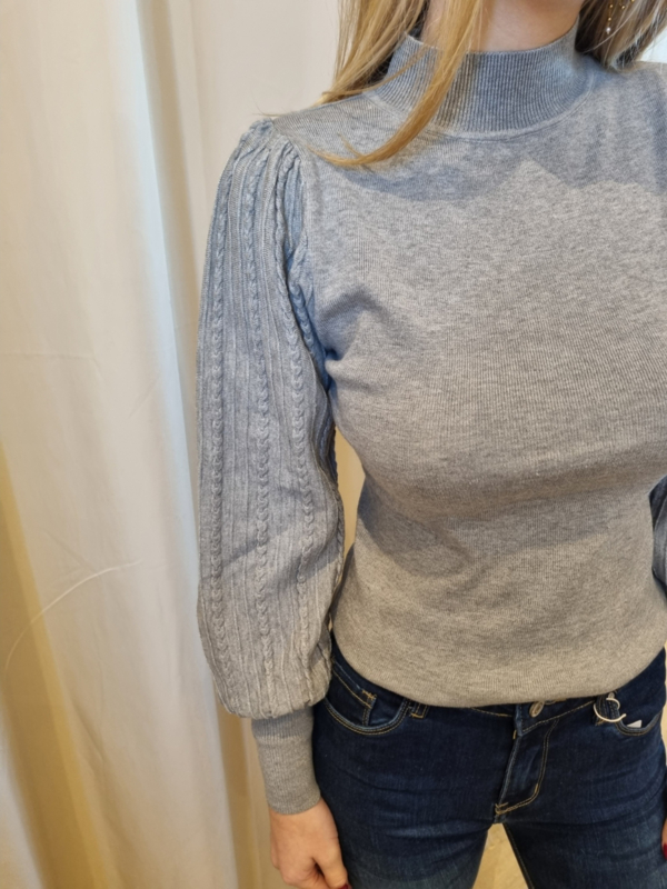 aansluitend truitje met licht glanseffect in de mouwen grijszacht truitje met lichtjes oversized mouwen en subtiel glanseffect in de mouwen