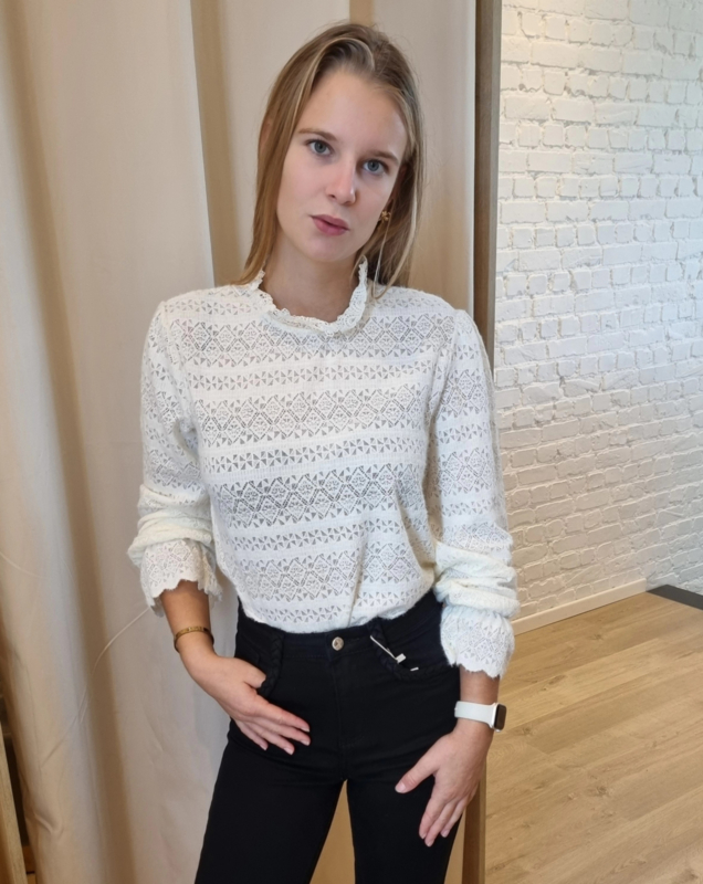 kanten bloesje met leuk accent aan de mouwtjesklassevol kanten bloesje met volants aan de mouwen