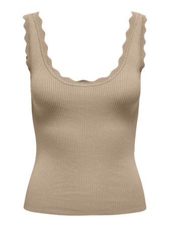 JDYNANNA S/L SCALLOP EDGE TOP KNT NOOS taupetopje in stevige stof met gegolfde randjes