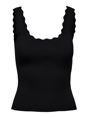 JDYNANNA S/L SCALLOP EDGE TOP KNT NOOS zwarttopje in stevige stof met gegolfde randjes