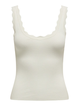 JDYNANNA S/L SCALLOP EDGE TOP KNT NOOS ecrutopje in stevige stof met gegolfde randjes