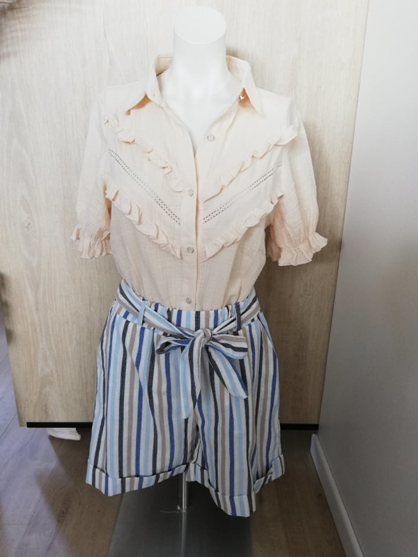 jeanshemdje in lichtblauwe kleur met frulletjesmooie stevig hemd met frulletje