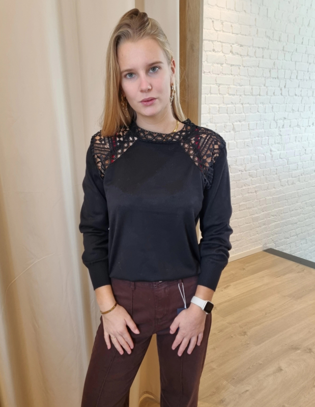 trui met gaatjesdetail bovenaan zwartlichtere trui met gaatjesmotief