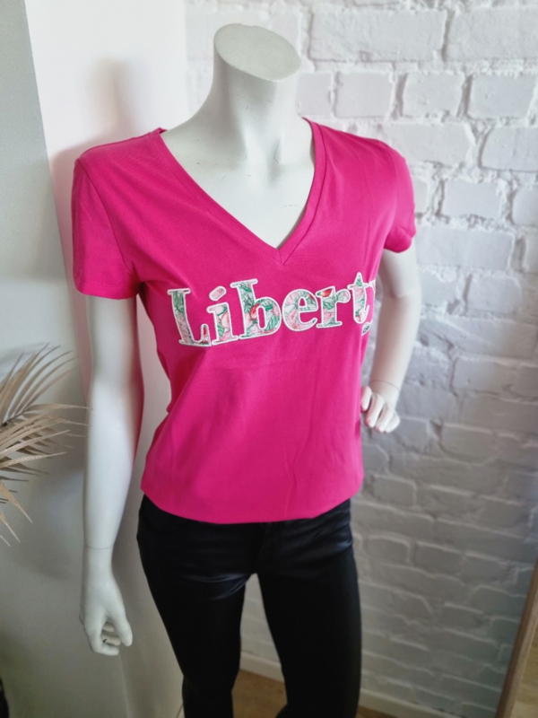 T-shirt liberty fuchsiamooi T-shirt met V-hals en gekleurde tekst